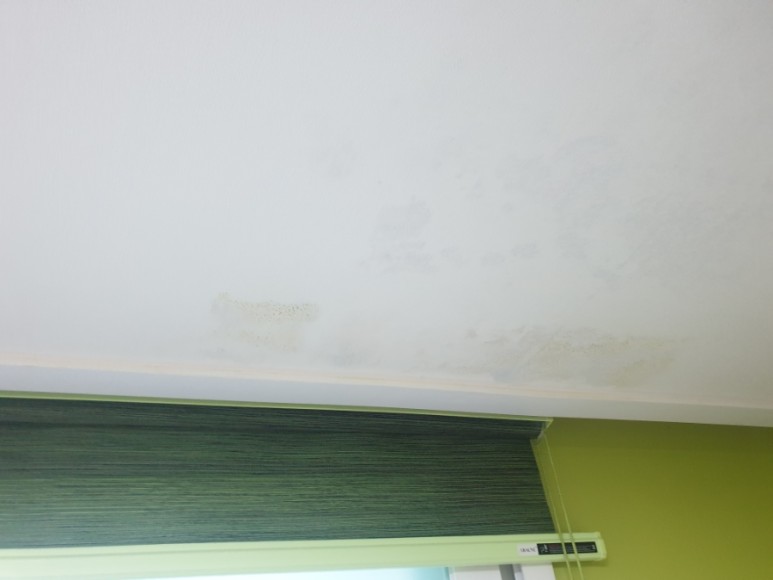 아랫집 피해 상황입니다. 천장이 변색 되었네요. 누수로 인해서 여기 저기 산발적으로 누수흔이 있습니다.