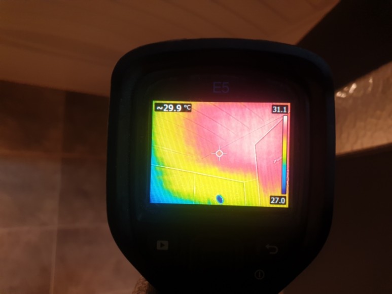 열화상 카메라로 현장을 봅니다. 열화상 카메라는 눈으로 보이지 않는 누수도 객관적 데이타를 가지고 볼수 있게 해주는 도구 입니다.
