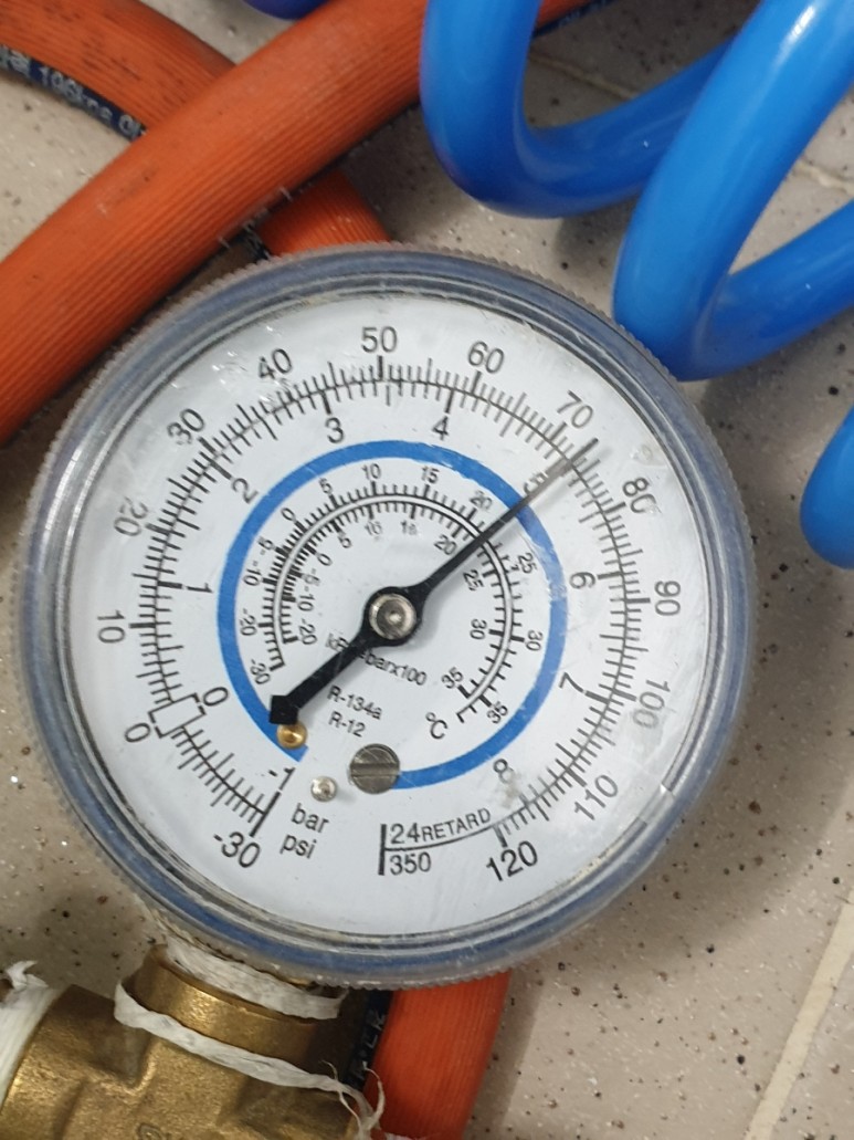 최소 5키로로 압력을 집어 넣었는데 살살 빠지네요. 누수가 있다는 신호 입니다.