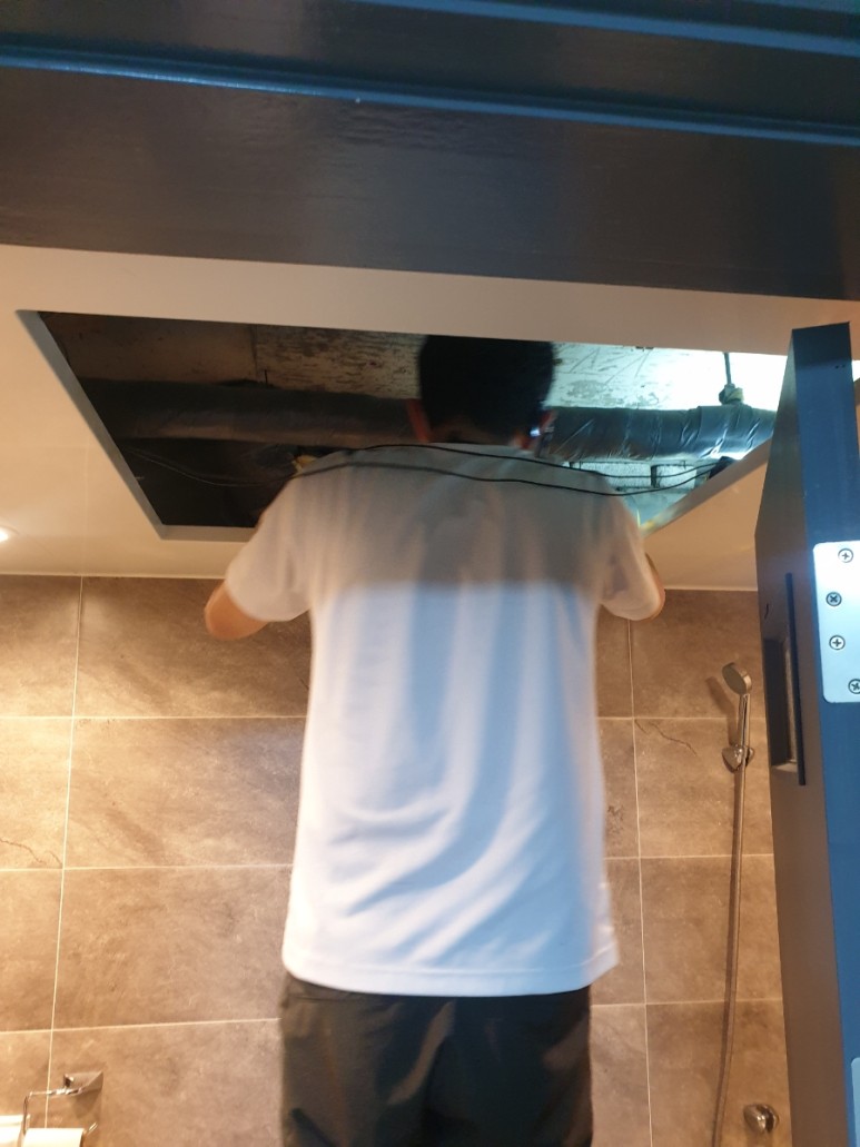 아랫집 화장실 천장에서 물이 떨어진다고 해서 긴급 출동했어요.